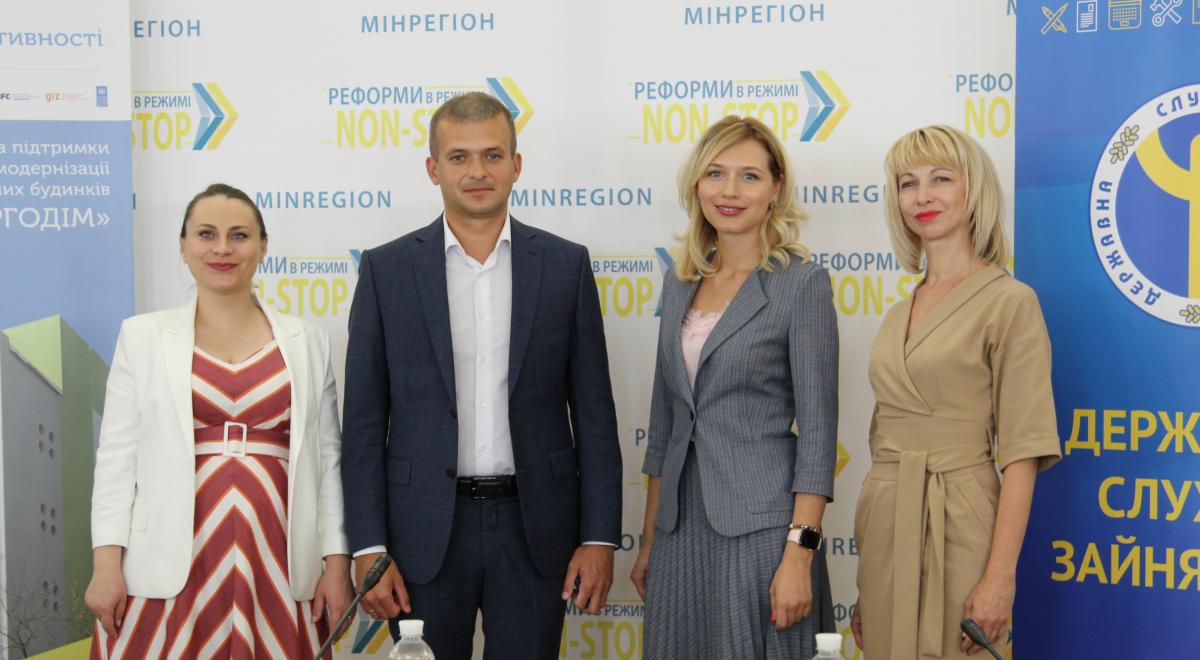 Сьогодні в Міністерстві розвитку громад та територій України відбулася пресконференція за участі Василя Лозинського – першого заступника Міністра розвитку громад та територій України, Юлії Головатюк-Унгуряну – директора Фонду енергоефективності та Юлії Жовтяк – заступника директора Державного центру зайнятості.