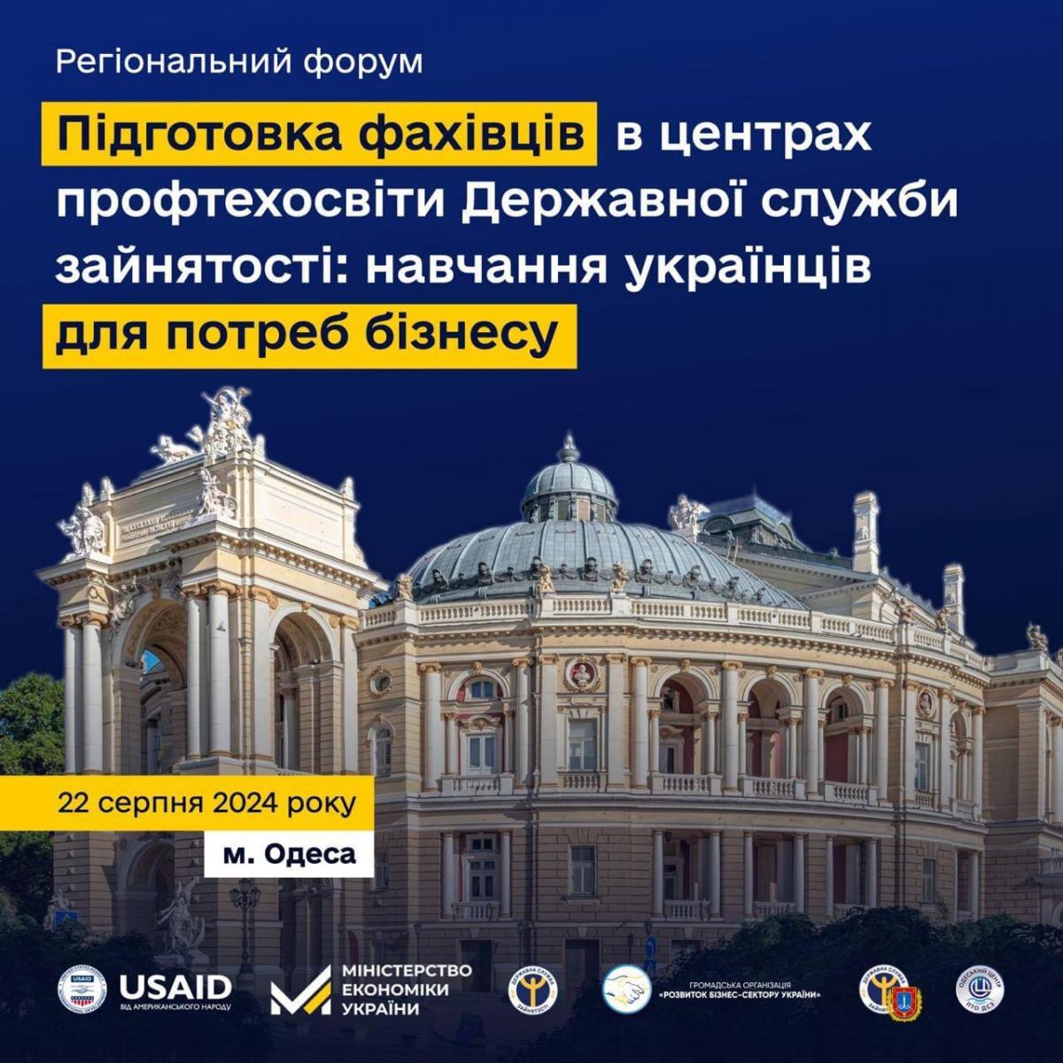 22 серпня 2024 року в Одесі відбудеться регіональний бізнес-форум «Підготовка фахівців в центрах профтехосвіти ДСЗ: навчання українців для потреб бізнесу».