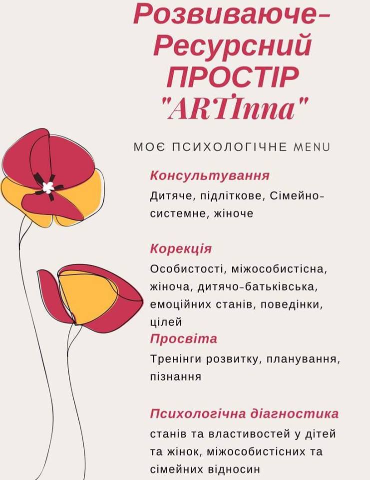 Так, торік у квітні Інна Василівна започаткувала власну справу – «Індивідуальна мистецька діяльність» з акцентом на ведення психологічної діяльності та арт-терапії. Пані Інна орендує власний кабінет для майстер-класів, тренінгів, психологічних ігор та індивідуальних консультацій.